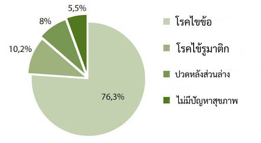 มีเพียง 5% ของประชากรที่โชคดีไม่ป่วยเป็นโรคกล้ามเนื้อและกระดูก แสดงให้เห็นว่า 95% ของคนไทยเป็นโรคข้อบางประเภท แน่นอนว่าโรคข้ออักเสบและโรคข้อเป็นโรคอันดับต้น ๆ